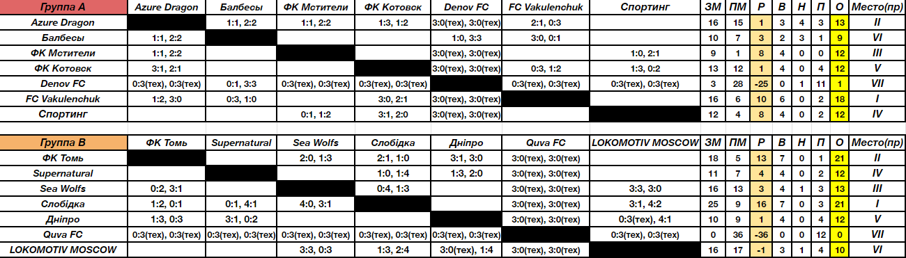 В Высшей Лиге 4 группы по 5 команд. Команды, которые заняли 1-2 места в своих группах, выходят в плей-офф